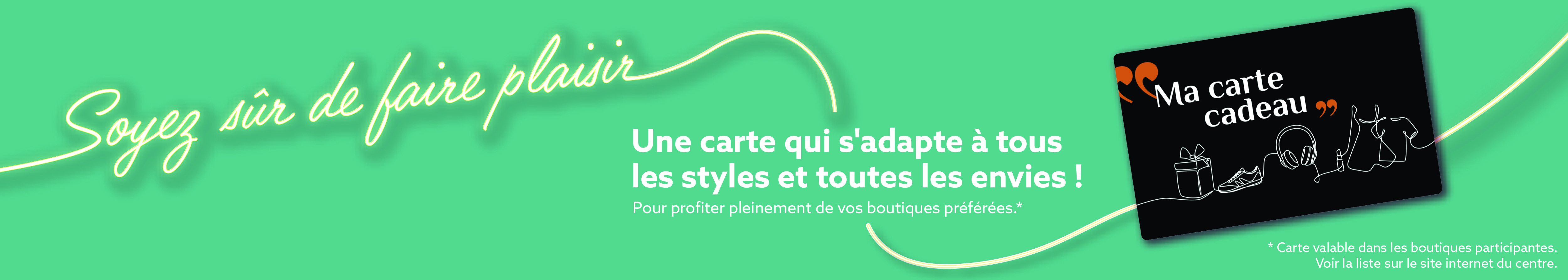 Dès maintenant, faites-vous plaisir et offrez le cadeau parfait avec la carte cadeau de votre centre commercial Cap Saran valable dans les boutiques participantes !